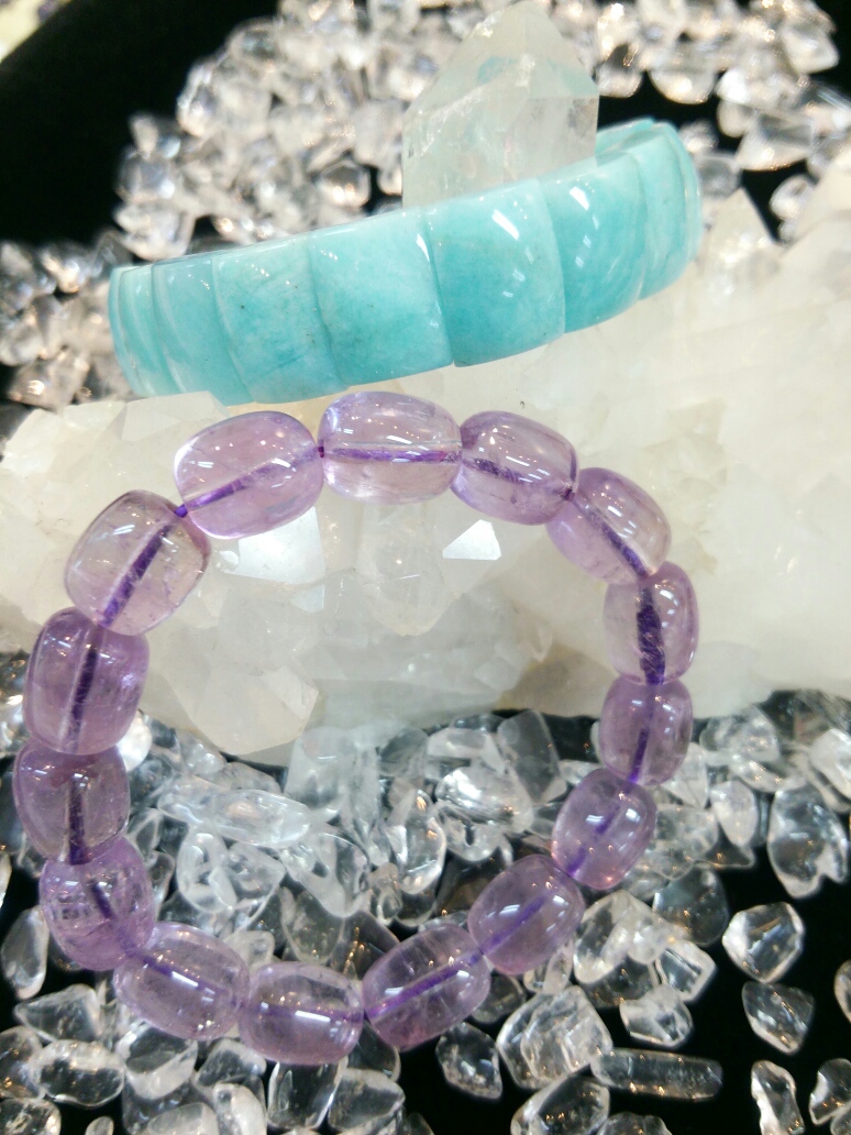 アメジストはラベンダーっぽい淡い色合いのブレスレットです。