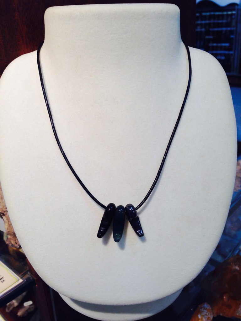 左から、健康、長寿、富のグリーンアゲート、有害な電磁波から身を守る、ブラックトルマリン、精神力を強め、血の巡りを良くするヘマタイト