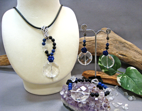 使用している天然石は、ラピスラズリとオニキス、水晶という