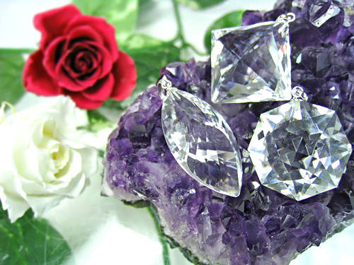 こんなキラキラカットの水晶やラフなカットの水晶を使用して