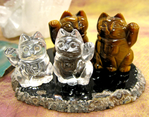 手前:招き猫ペア 水晶Sサイズ ¥5,880