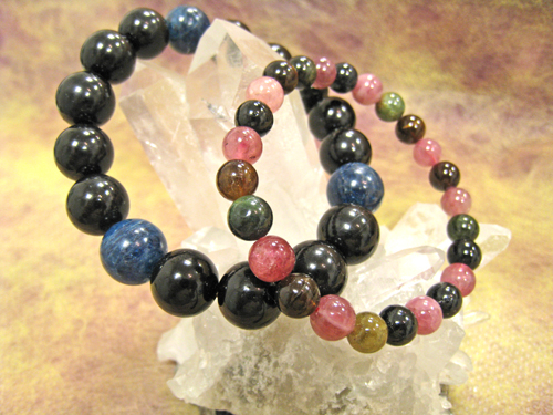 右:ミックスカラートルマリン 7mm玉ブレス ¥16,200