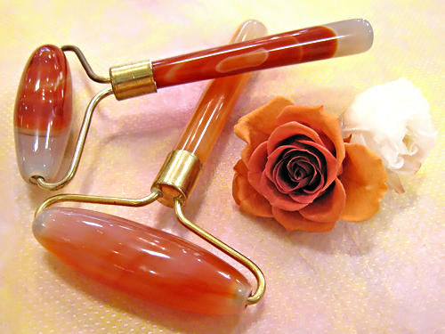 活力与えてくれるといわれるカーネリアンのマッサージローラー。