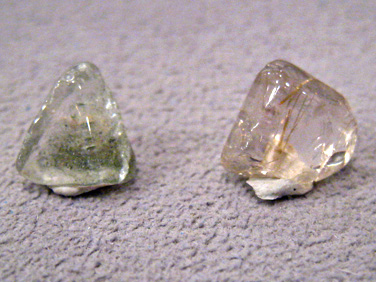 見えづらいかもしれませんが、左はガーデンクォーツ、右はルチルクォーツなのです。
